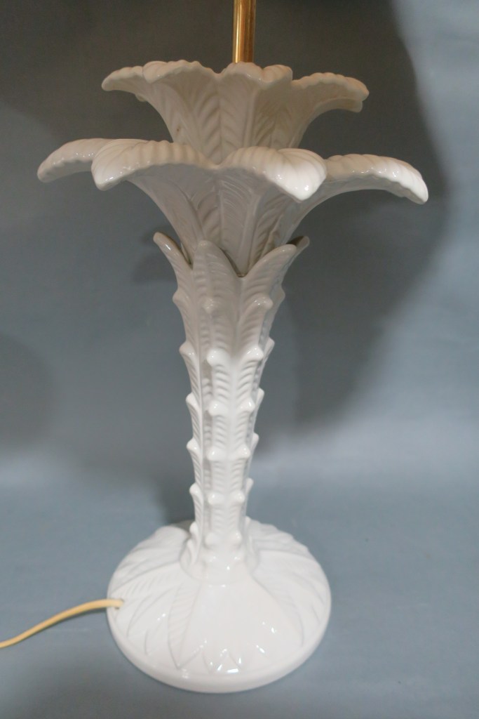 Lampe à poser en céramique blanche figurant un palmier.