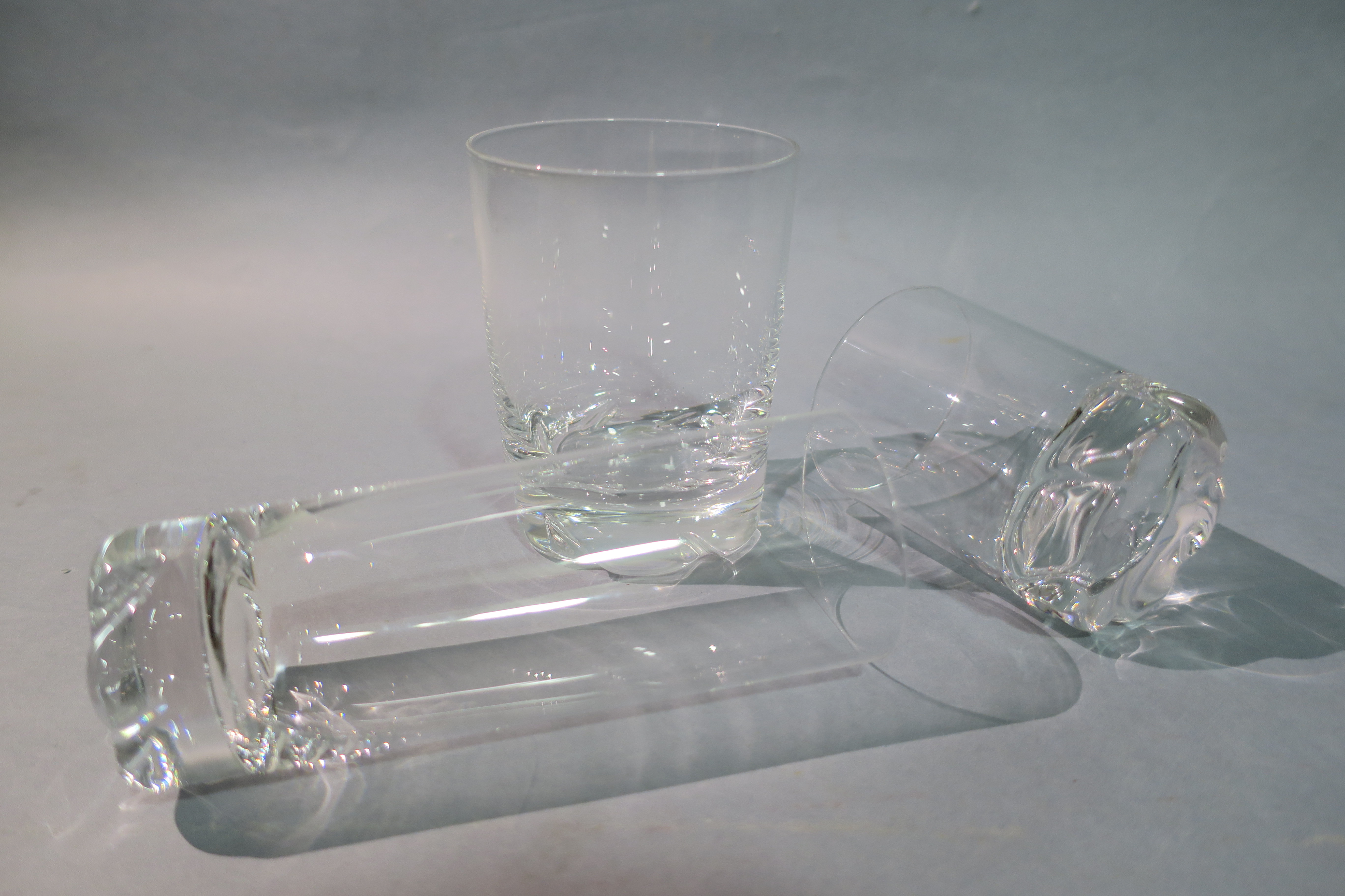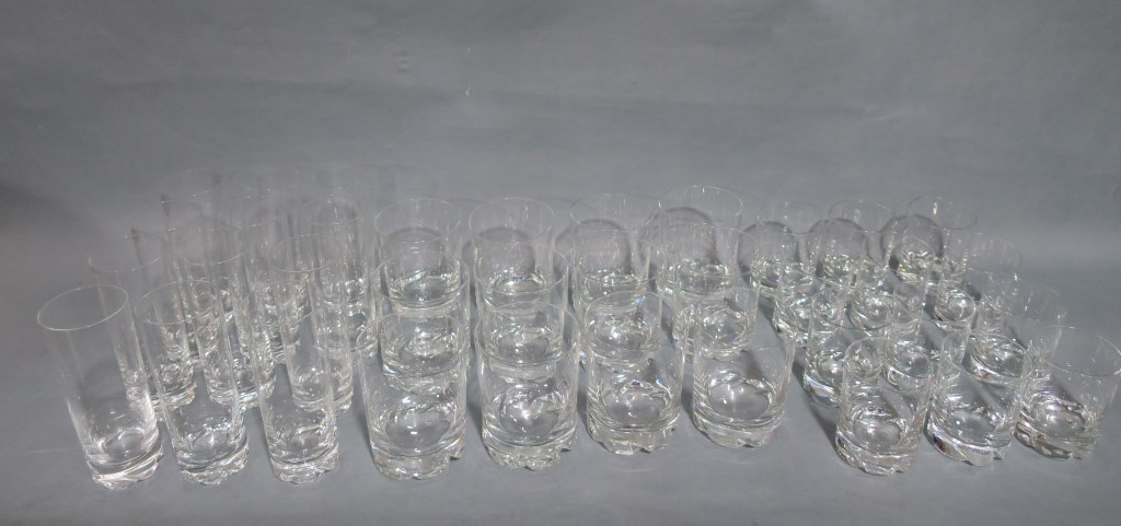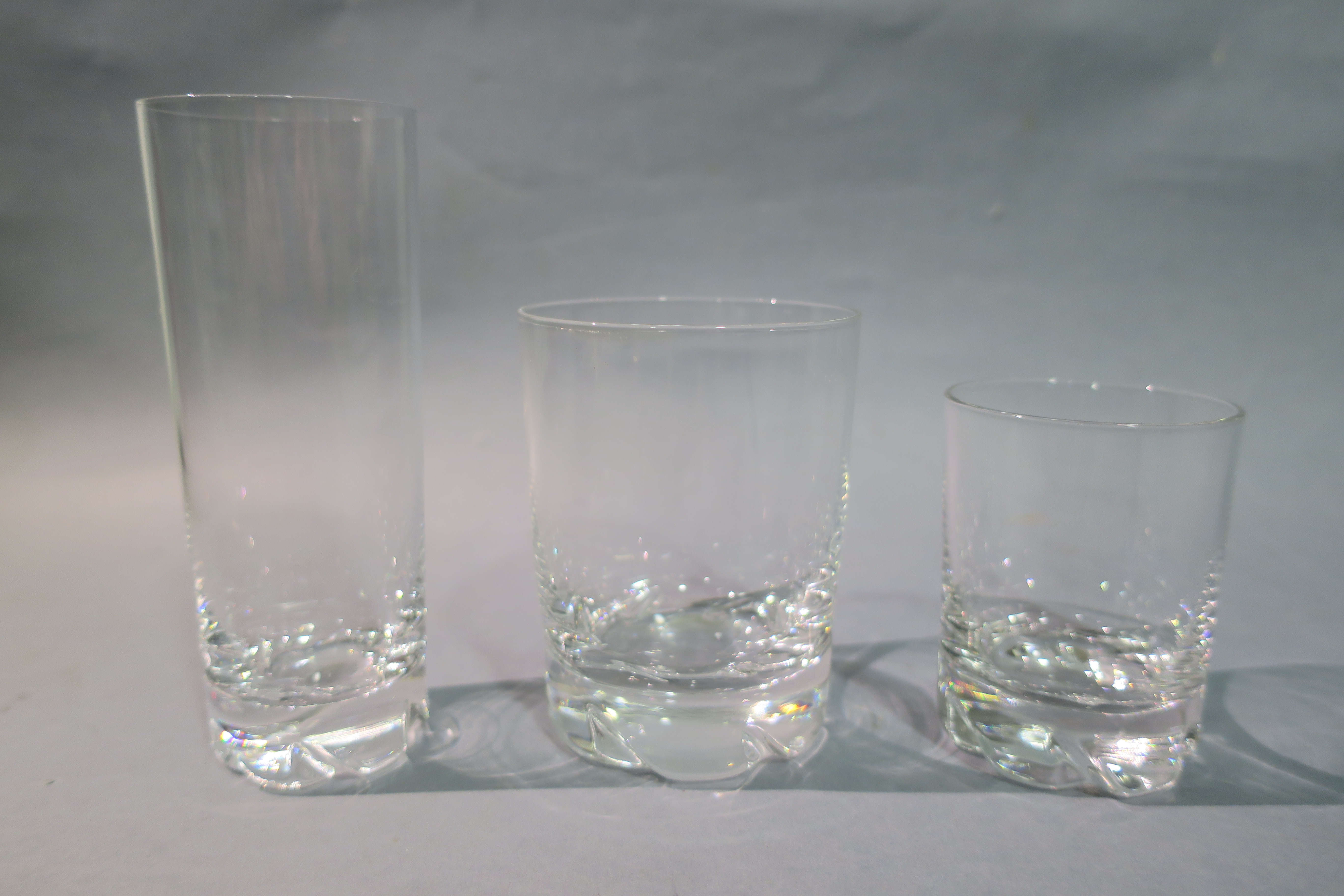 DAUM FRANCE. Partie de service de verres en cristal modèle « Blanzey » comprenant 12 verres à vodka, 12 verres à whiskey et 12 verres à porto. Signés sous la base. Parfait état.