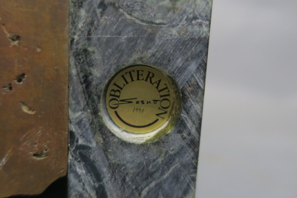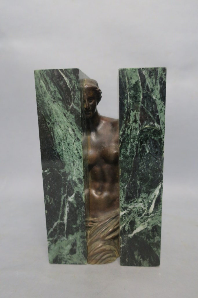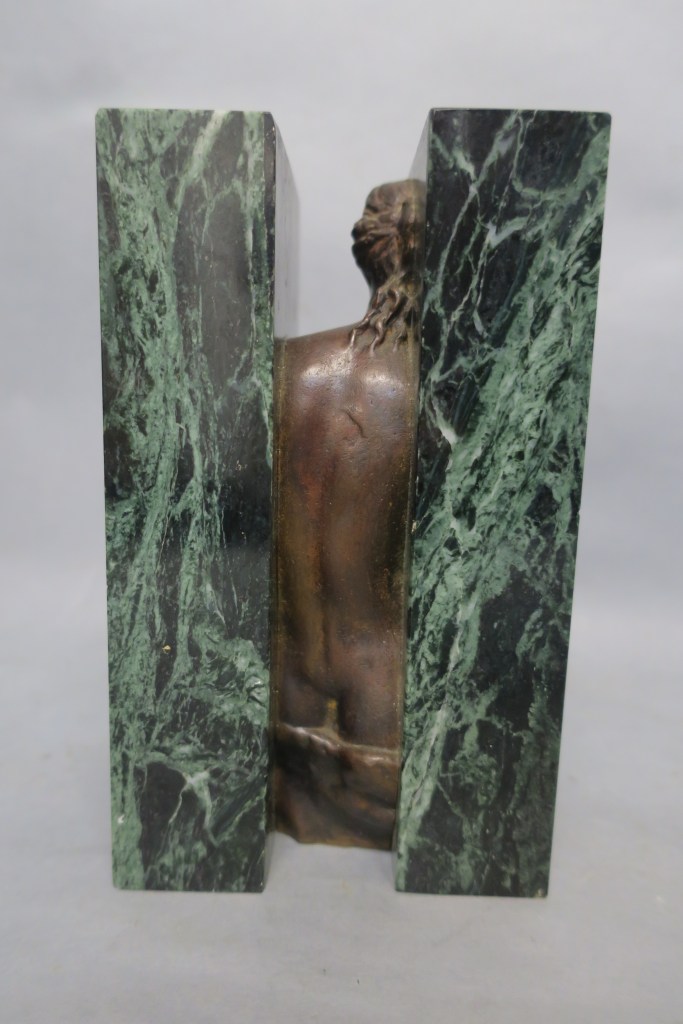 Sculpture en bronze à patine médaille et marbre vert.